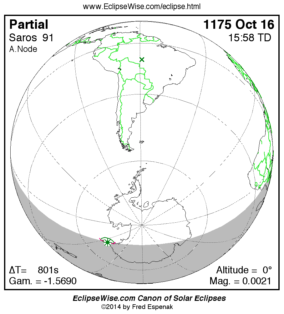 - Orthographic Map: Partial Solar Eclipse of 1175 Oct 16 - global map of eclipse visibility