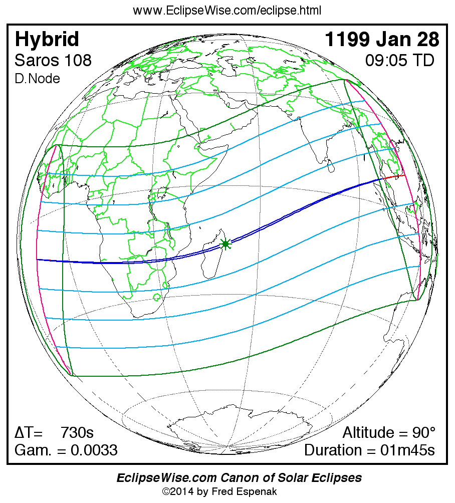 - Google Map: Hybrid Solar Eclipse of 1199 Jan 28 - interactive map of the eclipse path