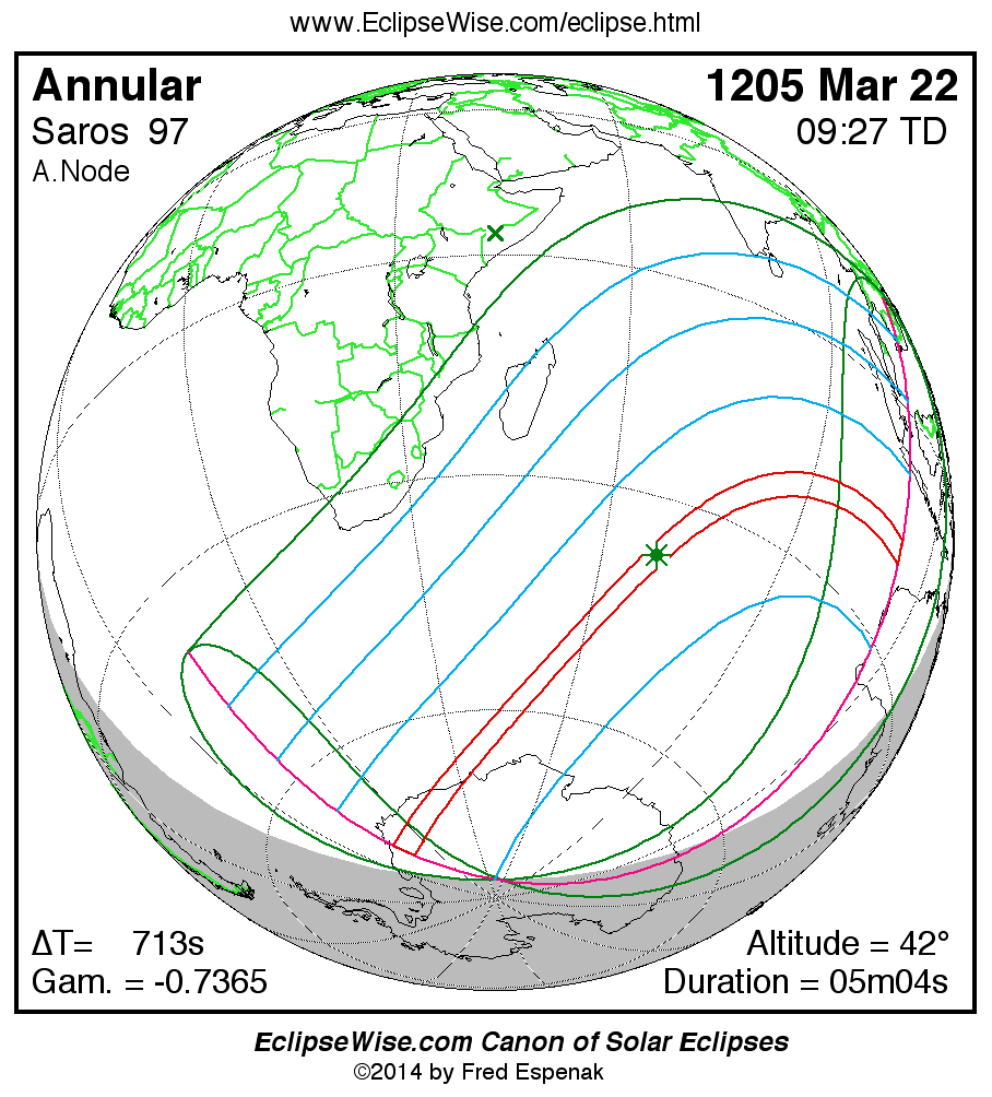 Annular Solar Eclipse of 1205 Mar 22