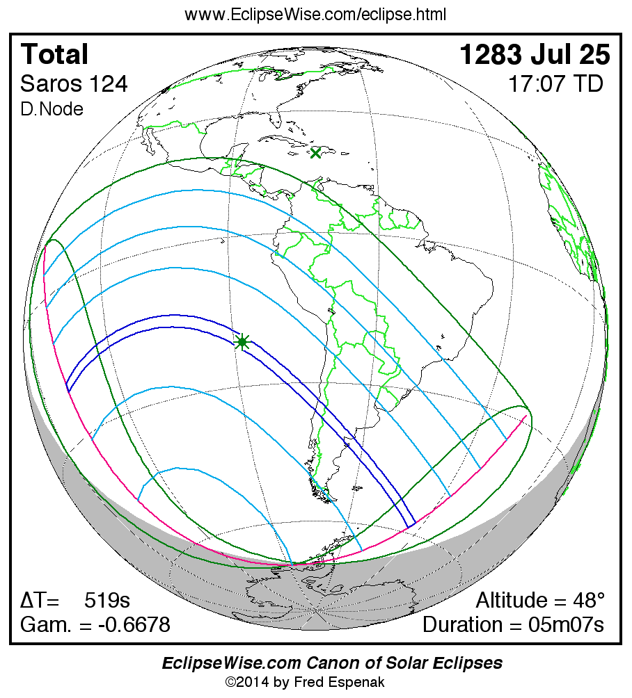 - Orthographic Map: Total Solar Eclipse of 1283 Jul 25 - global map of eclipse visibility