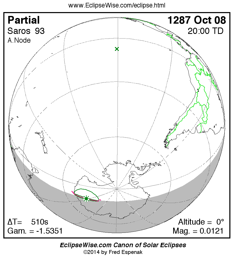 - Orthographic Map: Partial Solar Eclipse of 1287 Oct 08 - global map of eclipse visibility