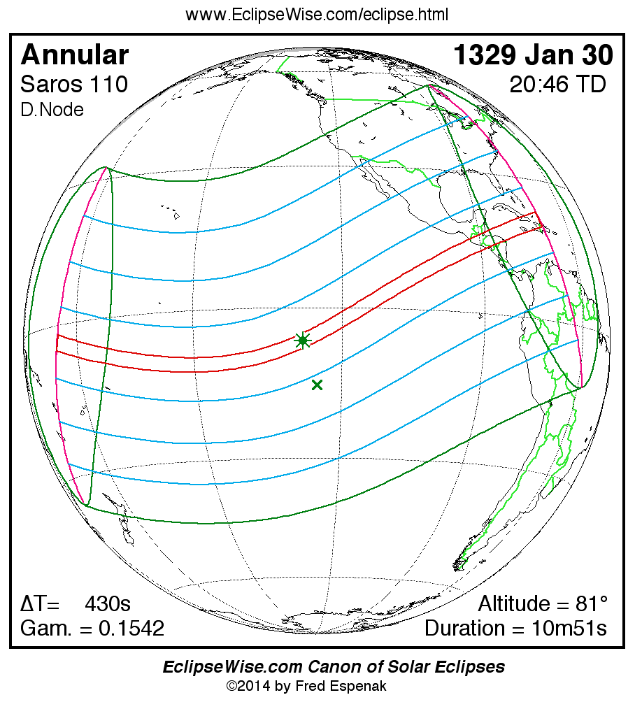 - Google Map: Annular Solar Eclipse of 1329 Jan 30 - interactive map of the eclipse path