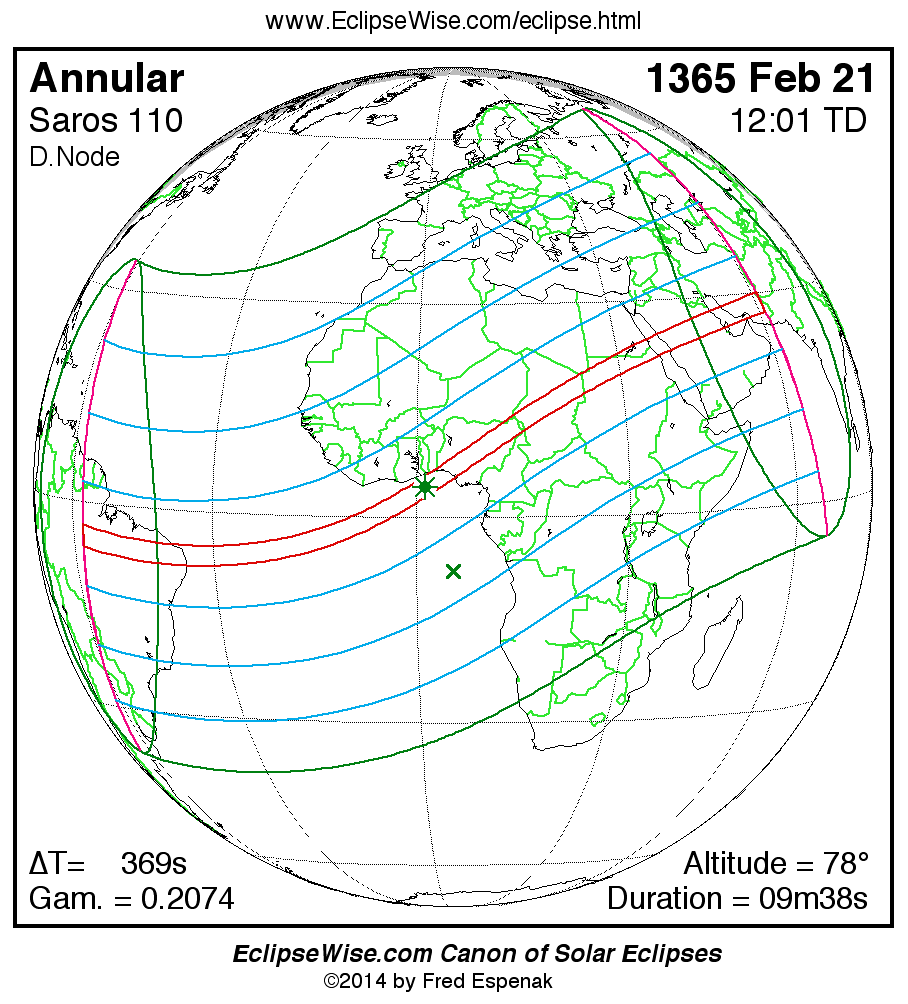 - Google Map: Annular Solar Eclipse of 1365 Feb 21 - interactive map of the eclipse path