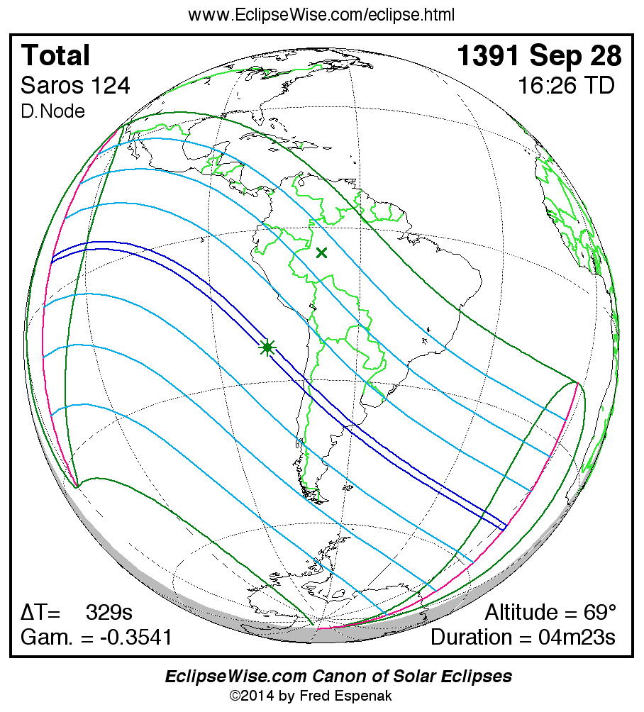 - Orthographic Map: Total Solar Eclipse of 1391 Sep 28 - global map of eclipse visibility