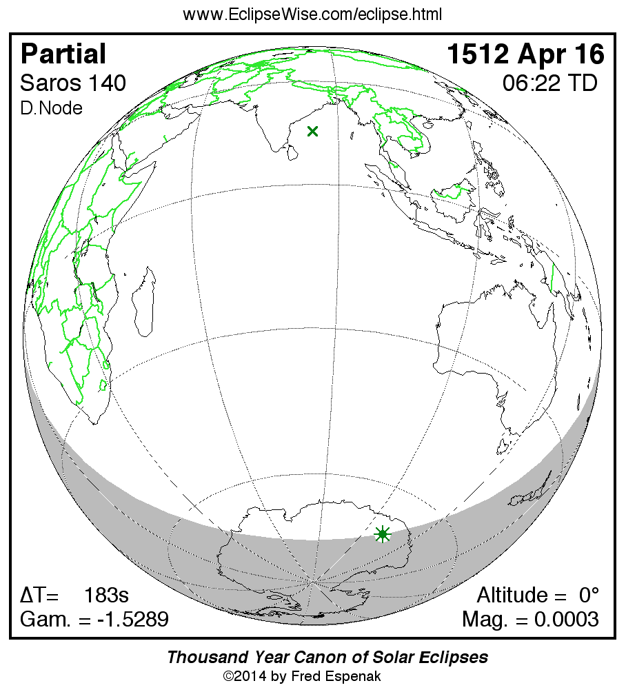 - Orthographic Map: Partial Solar Eclipse of 1512 Apr 16 - global map of eclipse visibility