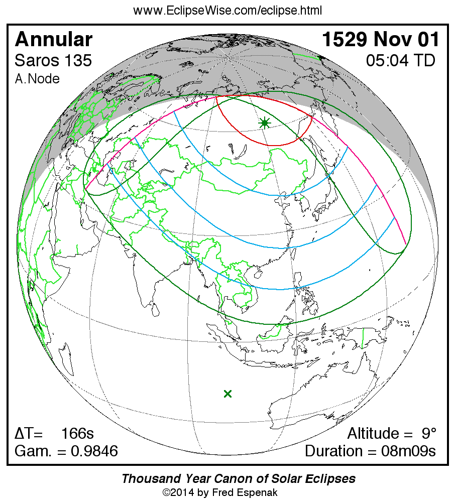 - Google Map: Annular Solar Eclipse of 1529 Nov 01 - interactive map of the eclipse path