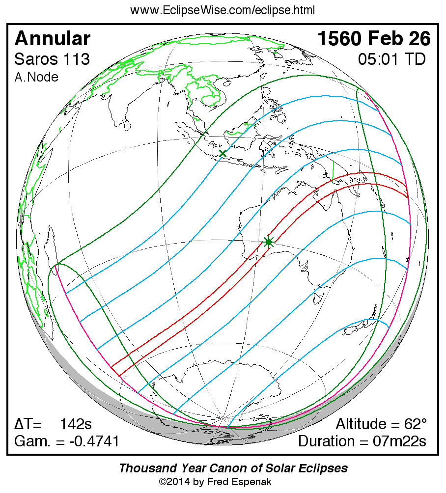 - Google Map: Annular Solar Eclipse of 1560 Feb 26 - interactive map of the eclipse path