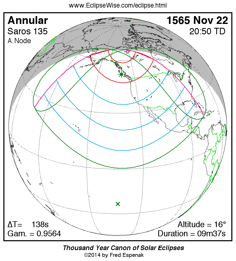 - Orthographic Map: Annular Solar Eclipse of 1565 Nov 22 - global map of eclipse visibility