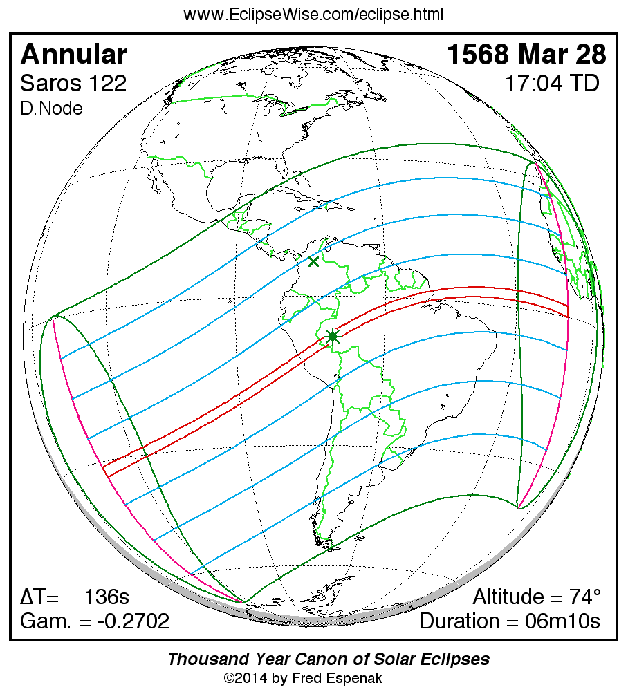 - Google Map: Annular Solar Eclipse of 1568 Mar 28 - interactive map of the eclipse path