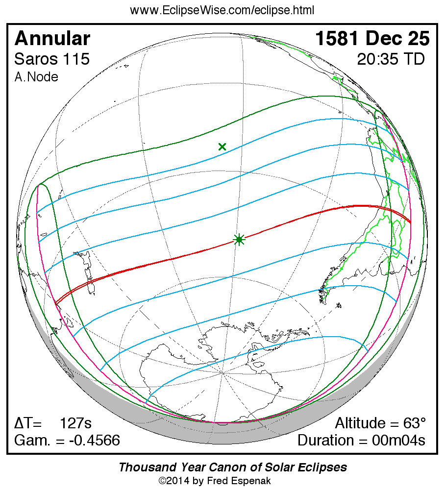 - Google Map: Annular Solar Eclipse of 1581 Dec 25 - interactive map of the eclipse path