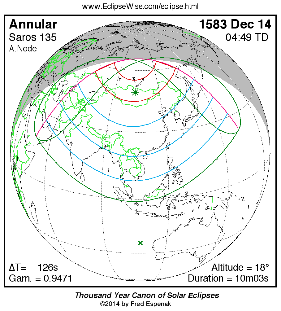 - Google Map: Annular Solar Eclipse of 1583 Dec 14 - interactive map of the eclipse path