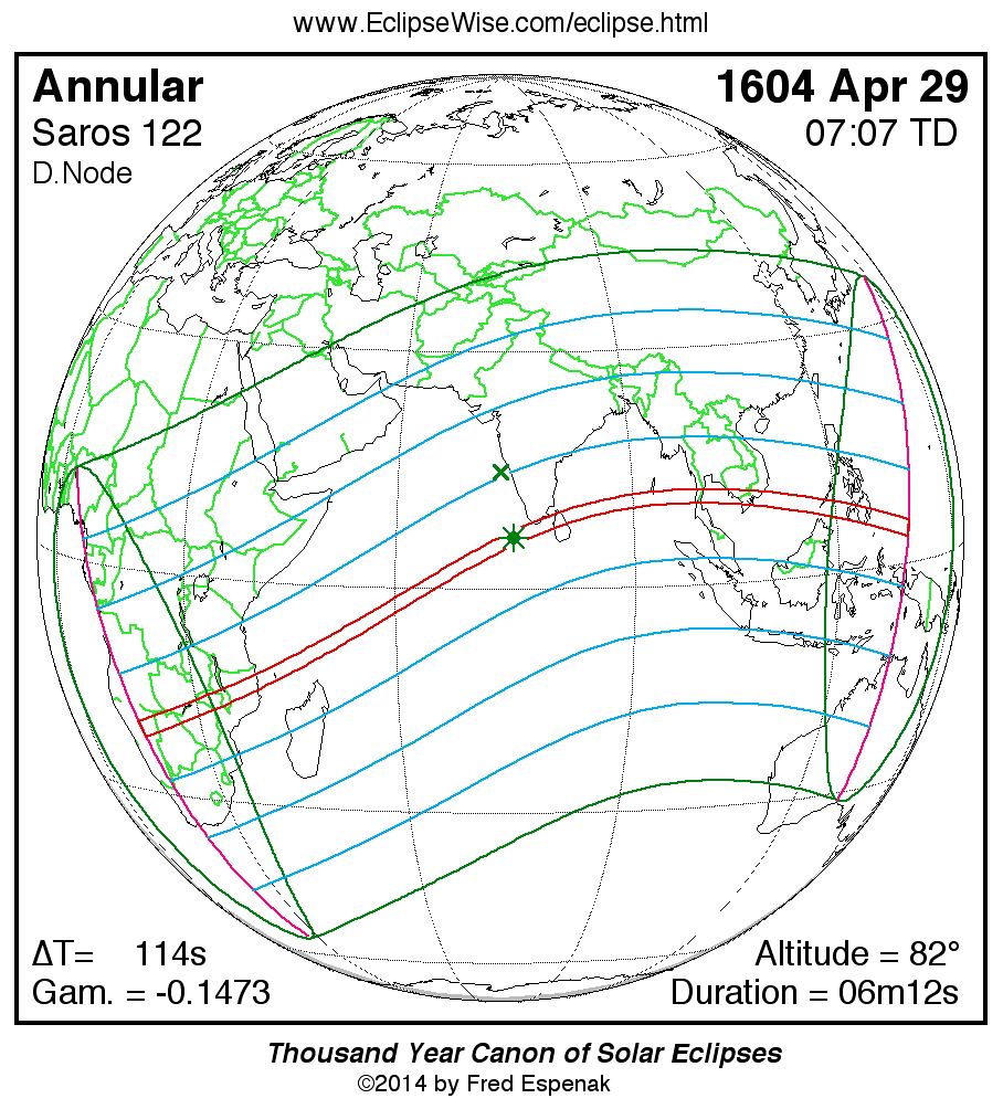- Google Map: Annular Solar Eclipse of 1604 Apr 29 - interactive map of the eclipse path