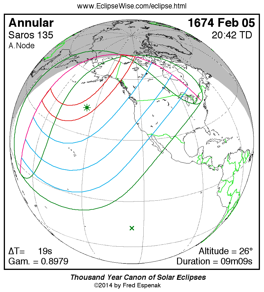 - Google Map: Annular Solar Eclipse of 1674 Feb 05 - interactive map of the eclipse path