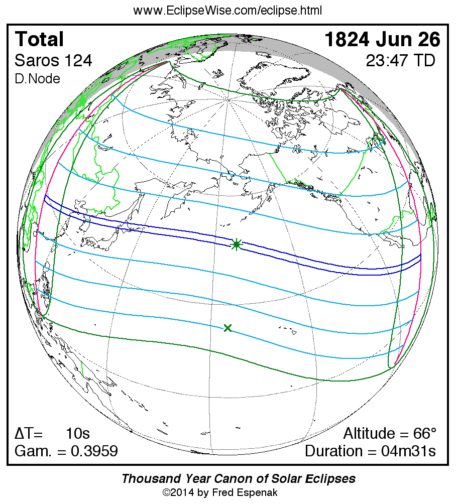 - Path Table: Total Solar Eclipse of 1824 Jun 26 - coordinates of the central line and path limits