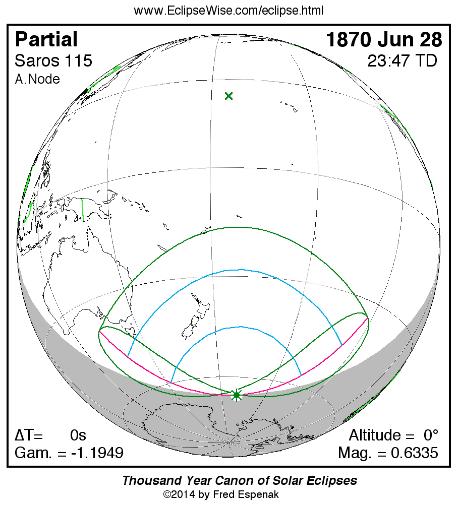 The instant of greatest eclipse takes place on 1870 Jun 28 at 23:46:43 TD (23:46:42 UT1).
