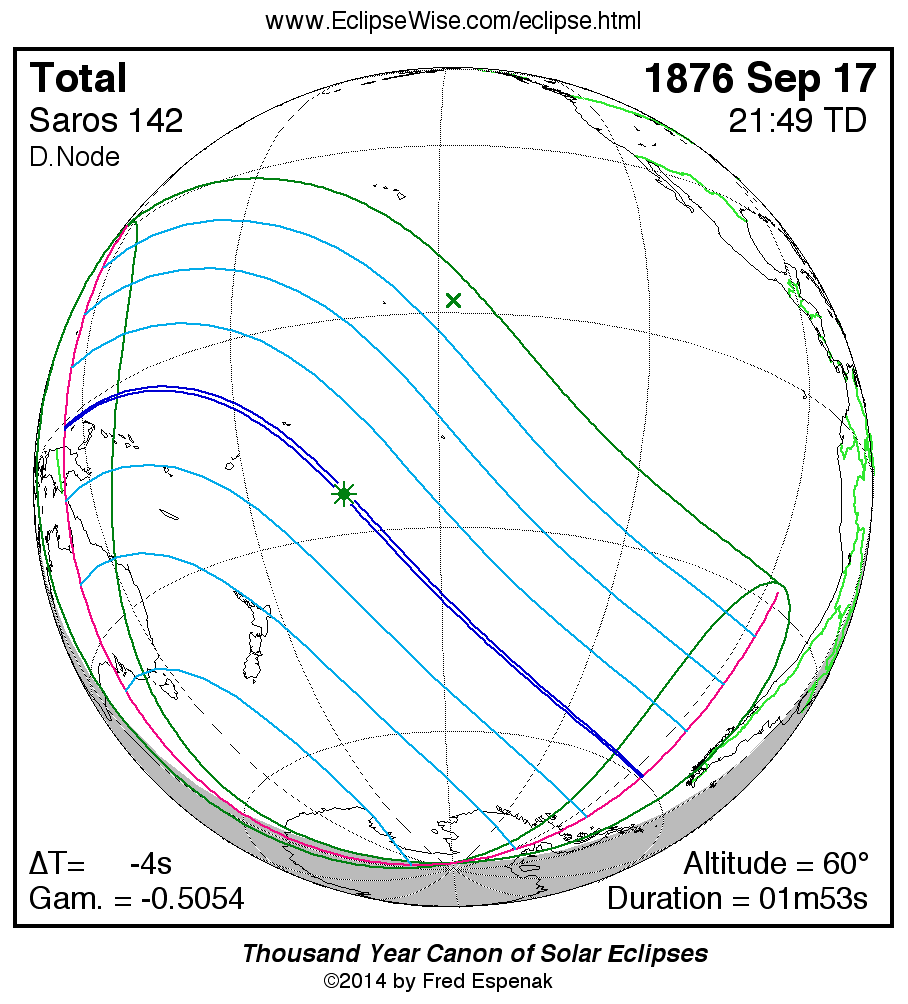 The instant of greatest eclipse takes place on 1876 Sep 17 at 21:49:15 TD (21:49:19 UT1).