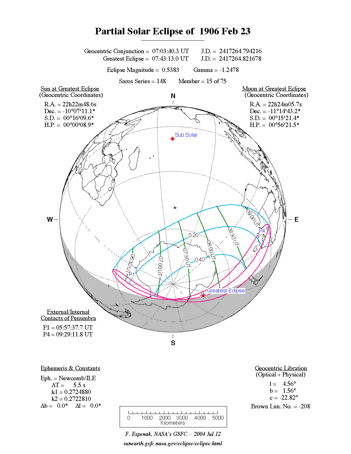 | Greatest Eclipse | 1906 Feb 23 at 07:43:20.4 TD (07:43:14.9 UT1) | 2417264.821701 |