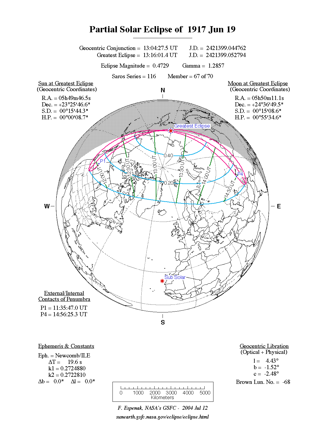 | Greatest Eclipse | 1917 Jun 19 at 13:16:20.5 TD (13:16:00.9 UT1) | 2421399.052788 |