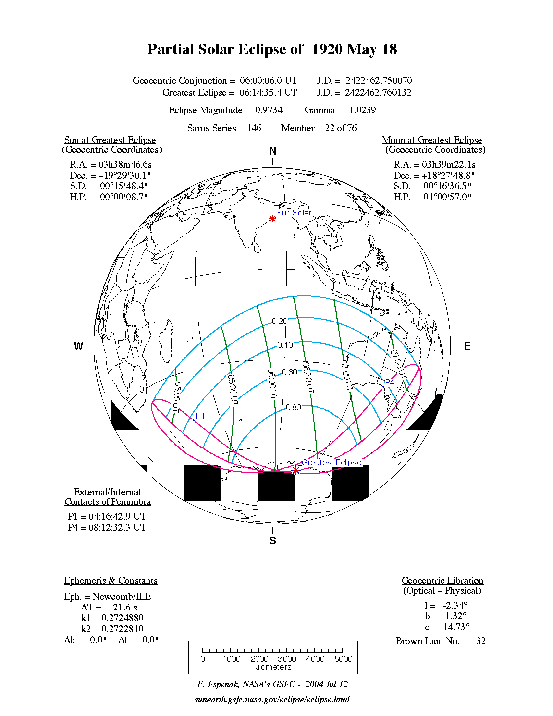 | Greatest Eclipse | 1920 May 18 at 06:14:55.0 TD (06:14:33.4 UT1) | 2422462.760109 |