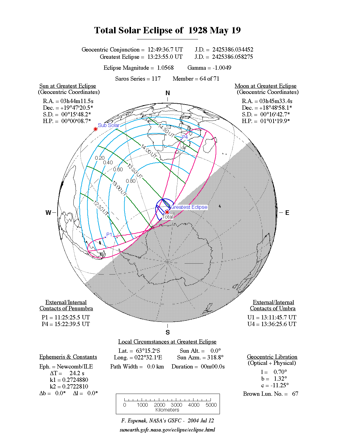 Eclipse Data: Total Solar Eclipse of 1928 May 19
