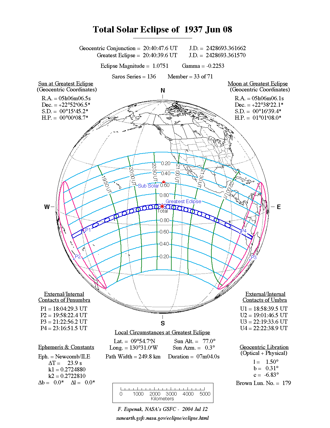 Eclipse Data: Total Solar Eclipse of 1937 Jun 08