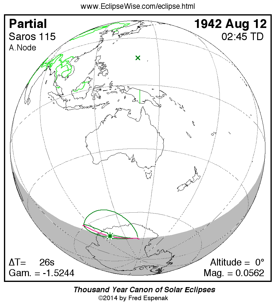- Orthographic Map: Partial Solar Eclipse of 1942 Aug 12 - detailed global map of eclipse visibility (Key to Figure)