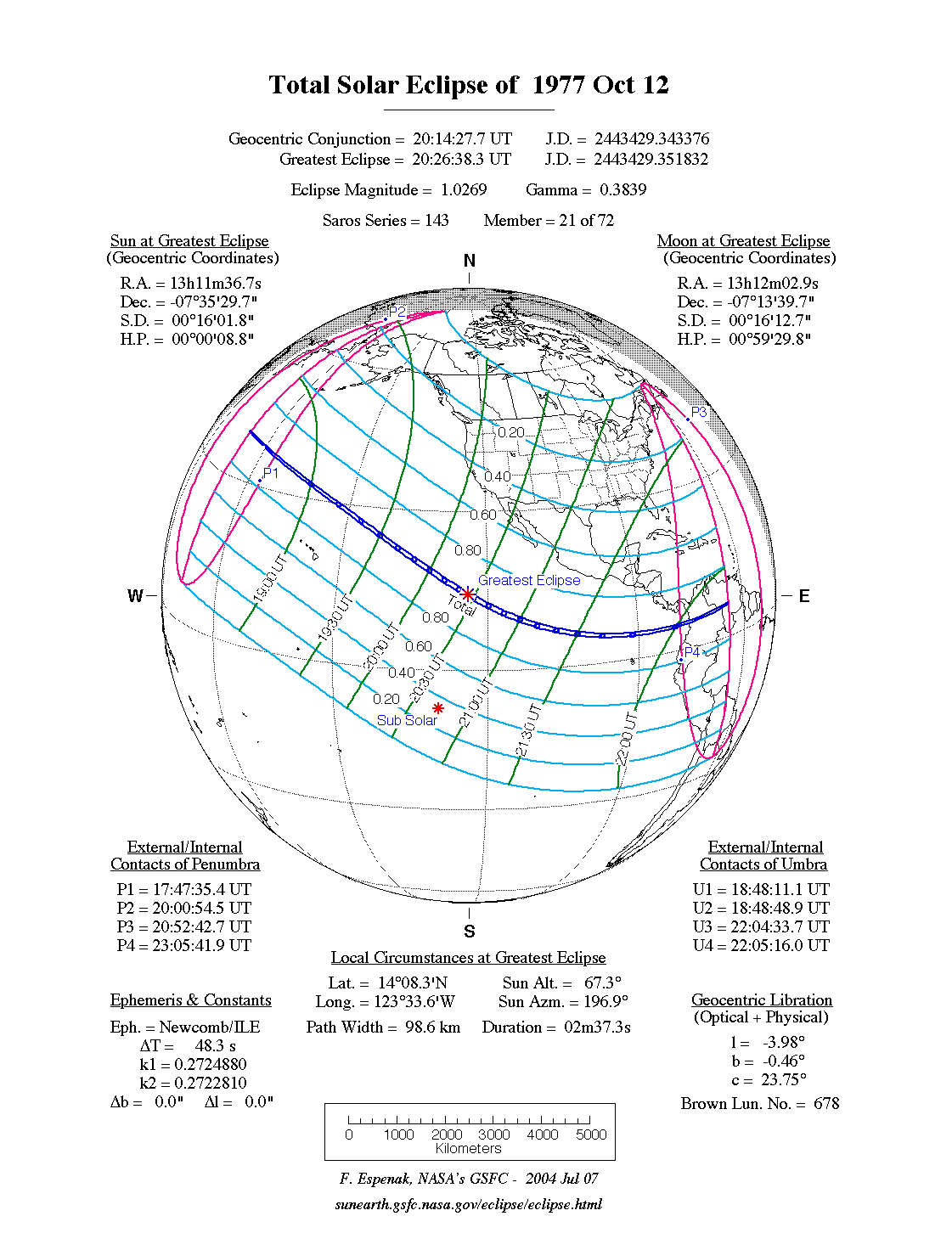 Eclipse Data: Total Solar Eclipse of 1977 Oct 12