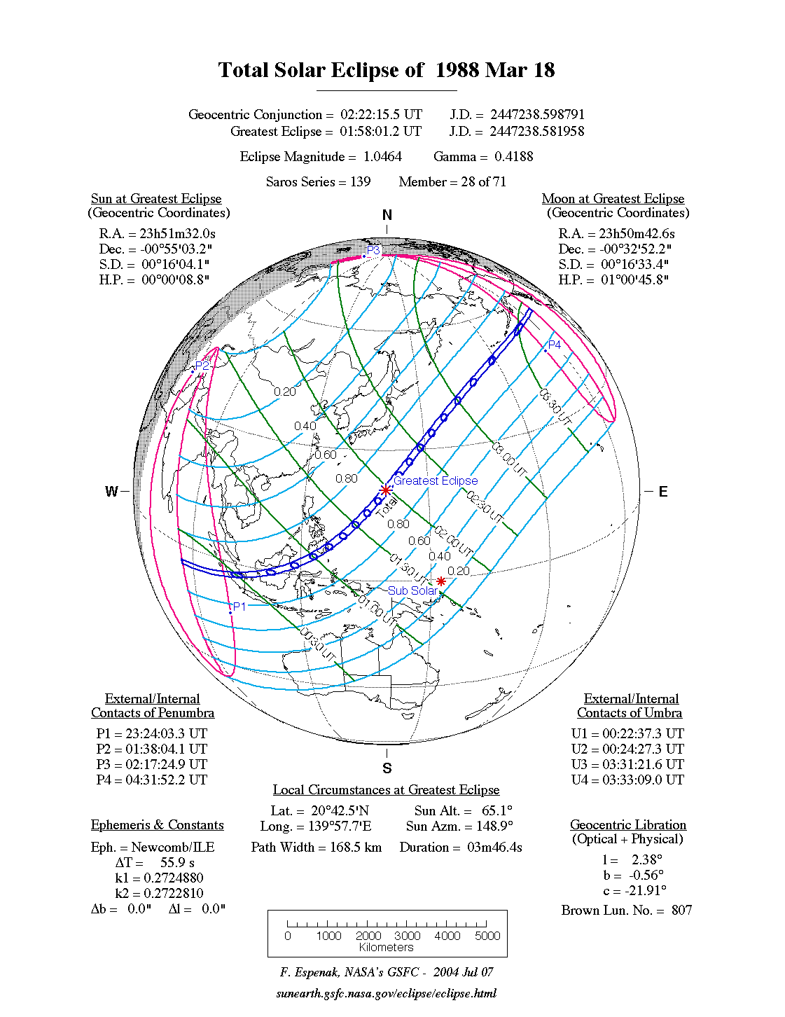 Eclipse Data: Total Solar Eclipse of 1988 Mar 18