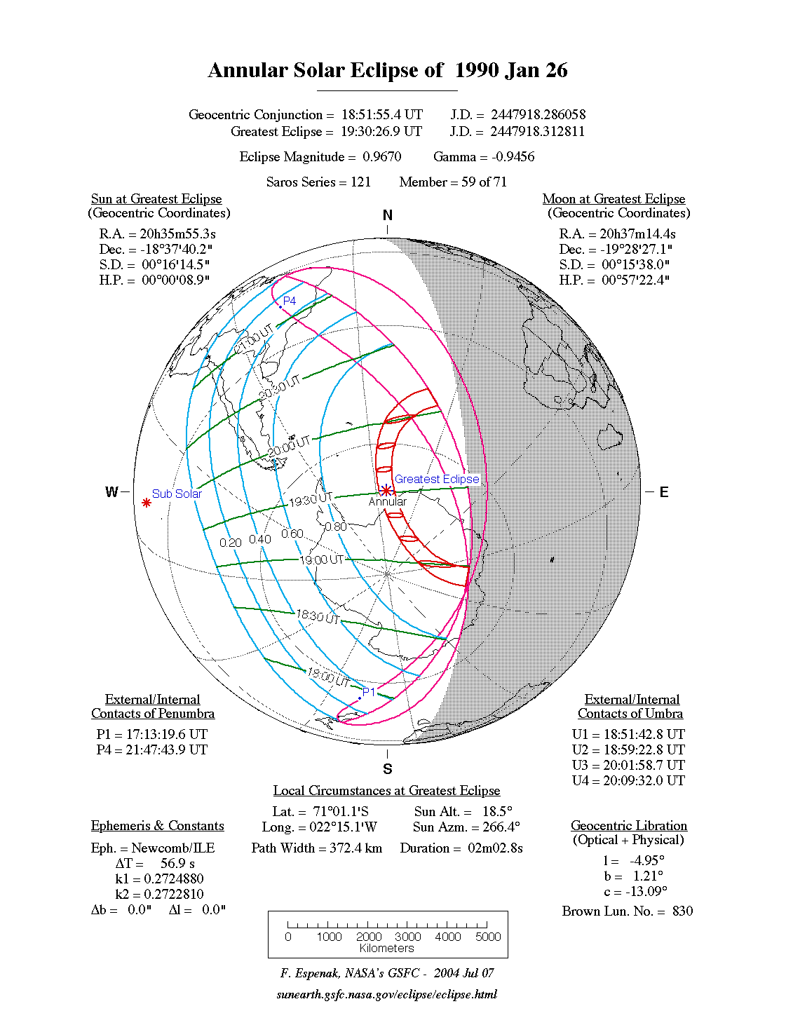 - Path Table: Annular Solar Eclipse of 1990 Jan 26 - coordinates of the central line and path limits