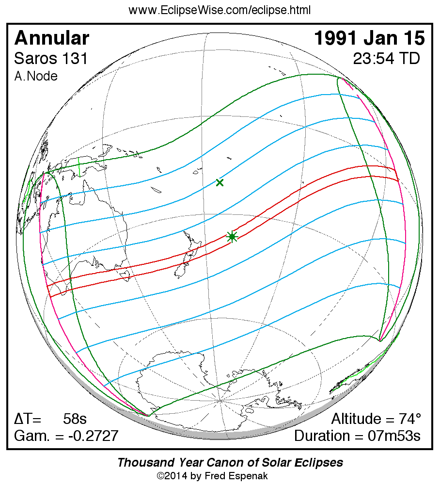 - Google Map: Annular Solar Eclipse of 1991 Jan 15 - interactive map of the eclipse path