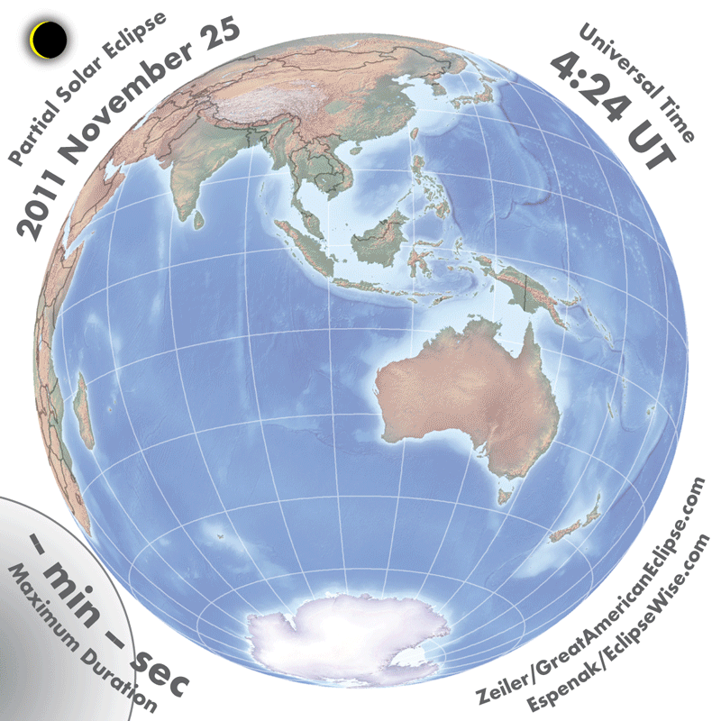 - Orthographic Map: Partial Solar Eclipse of 2011 Nov 25 - detailed global map of eclipse visibility (Key to Figure)