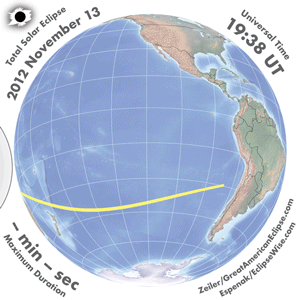 - Google Map: Total Solar Eclipse of 2012 Nov 13 - interactive map of the eclipse path