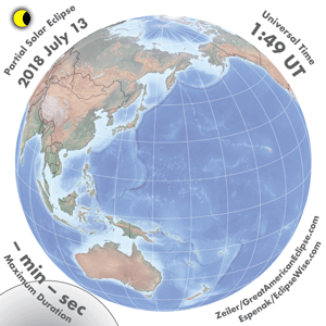 - Orthographic Map: Partial Solar Eclipse of 2018 Jul 13 - detailed global map of eclipse visibility (Key to Figure)