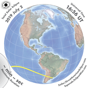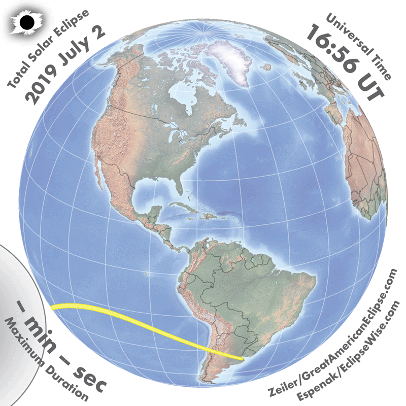 - Orthographic Map: Total Solar Eclipse of 2019 Jul 02 - detailed global map of eclipse visibility (Key to Figure)