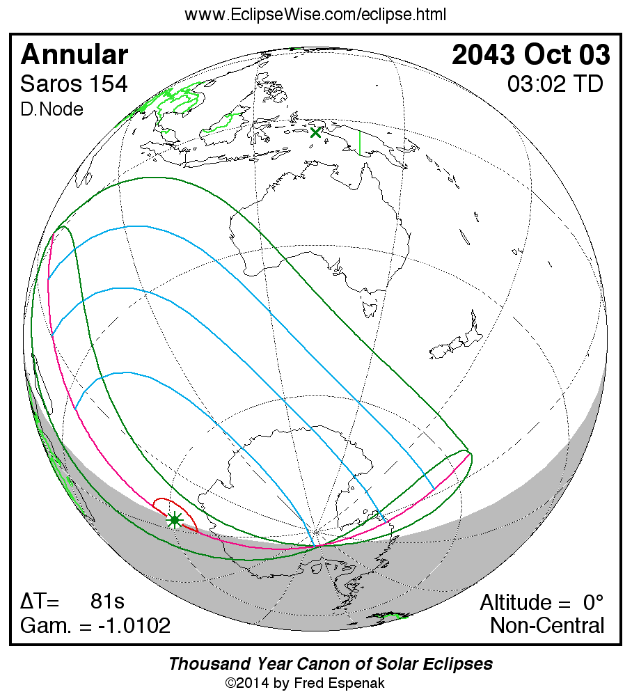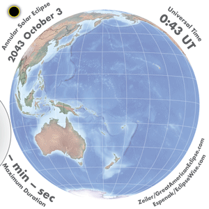 - Orthographic Map: Annular Solar Eclipse of 2043 Oct 03 - detailed global map of eclipse visibility (Key to Figure)
