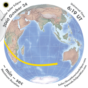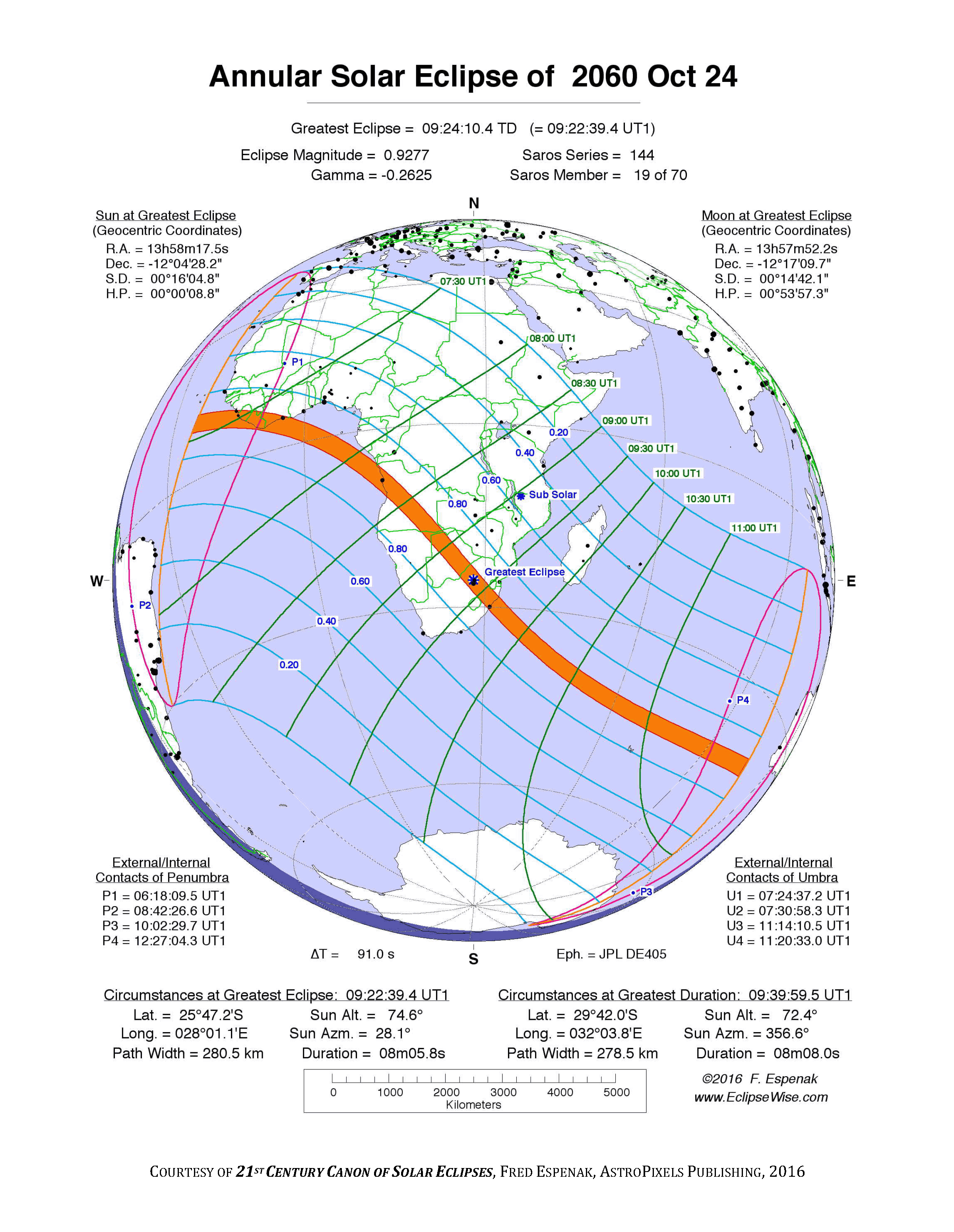 - Orthographic Map: Annular Solar Eclipse of 2060 Oct 24 - detailed global map of eclipse visibility (Key to Figure)