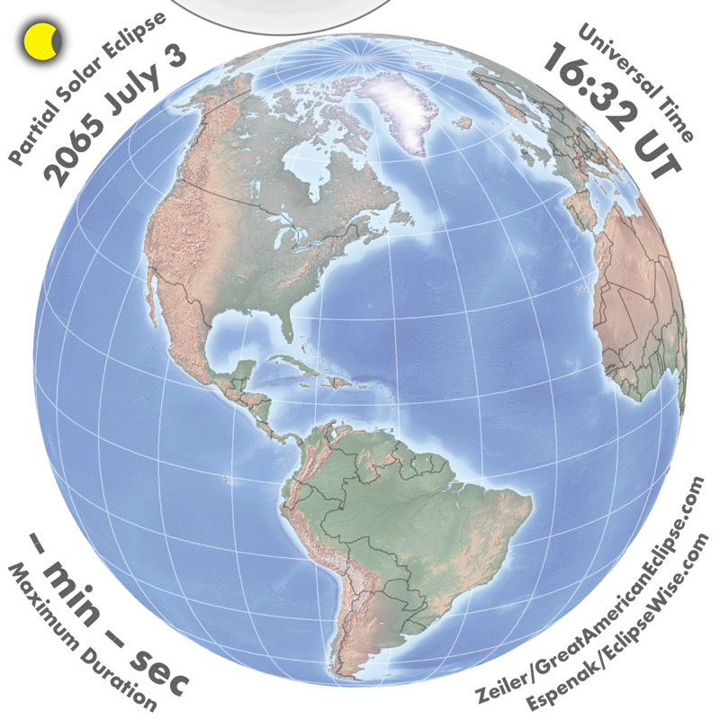 - Orthographic Map: Partial Solar Eclipse of 2065 Jul 03 - detailed global map of eclipse visibility (Key to Figure)