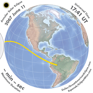 - Orthographic Map: Annular Solar Eclipse of 2067 Jun 11 - detailed global map of eclipse visibility (Key to Figure)
