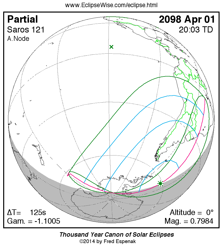 - Orthographic Map: Partial Solar Eclipse of 2098 Apr 01 - detailed global map of eclipse visibility (Key to Figure)