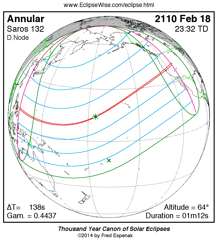 The annular solar eclipse of 2110 Feb 18 is followed two weeks later by a penumbral lunar eclipse on 2110 Mar 06.