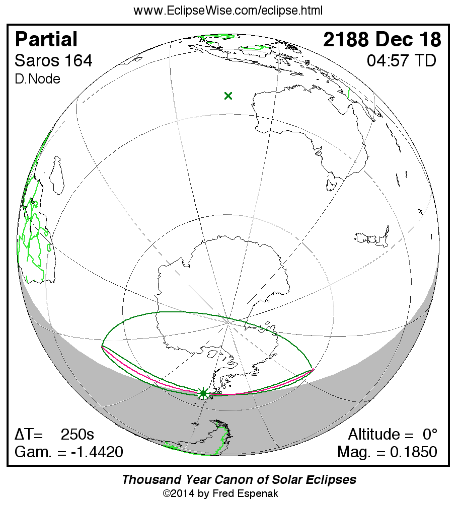Another solar eclipse occurs one synodic month before the 2188 Dec 18 eclipse. It is the partial solar eclipse of 2188 Nov 18.
