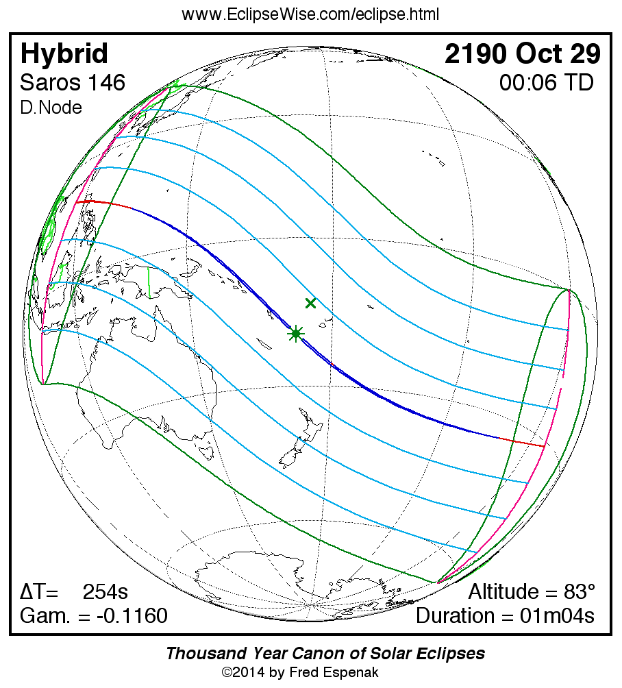 - Orthographic Map: Hybrid Solar Eclipse of 2190 Oct 29 - global map of eclipse visibility