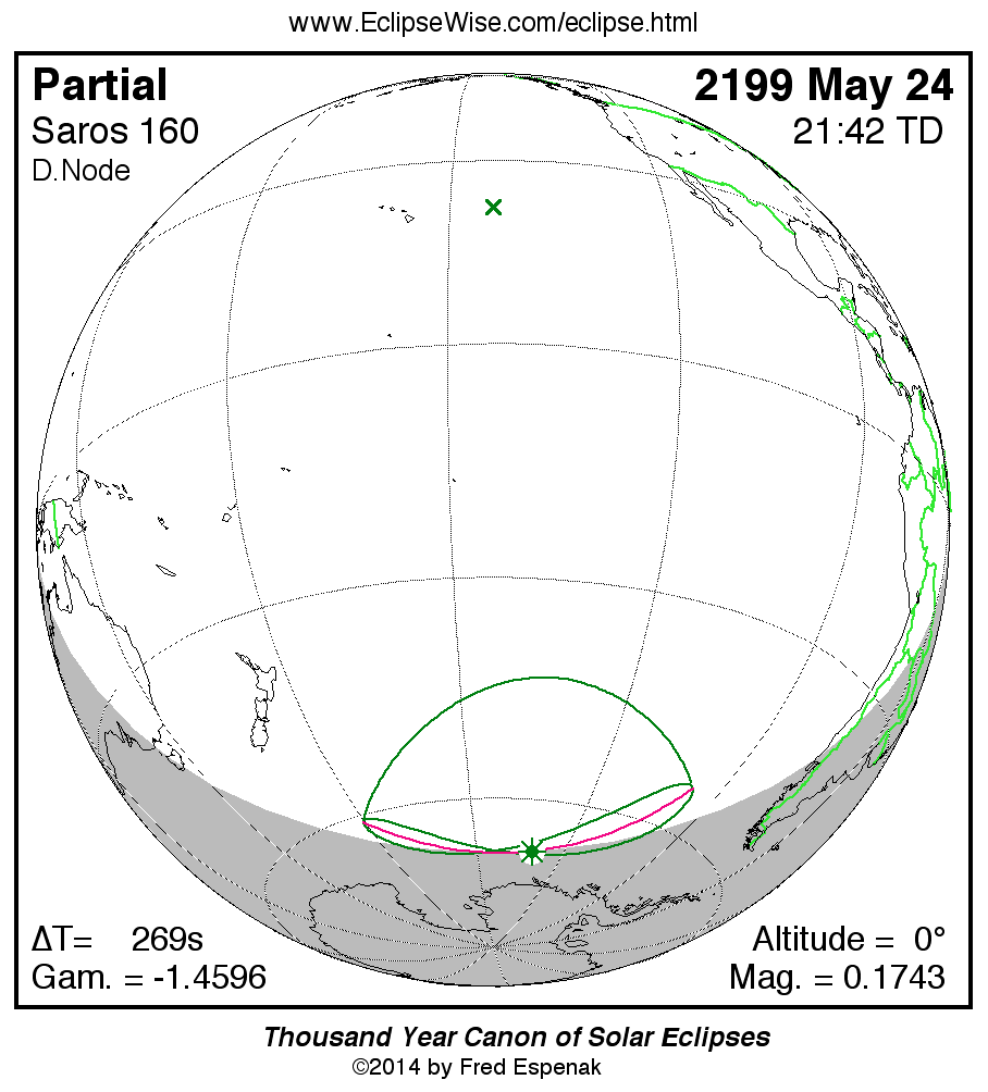 The instant of greatest eclipse takes place on 2199 May 24 at 21:42:07 TD (21:37:38 UT1).