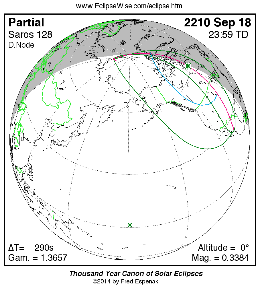 The instant of greatest eclipse takes place on 2210 Sep 18 at 23:59:09 TD (23:54:19 UT1).