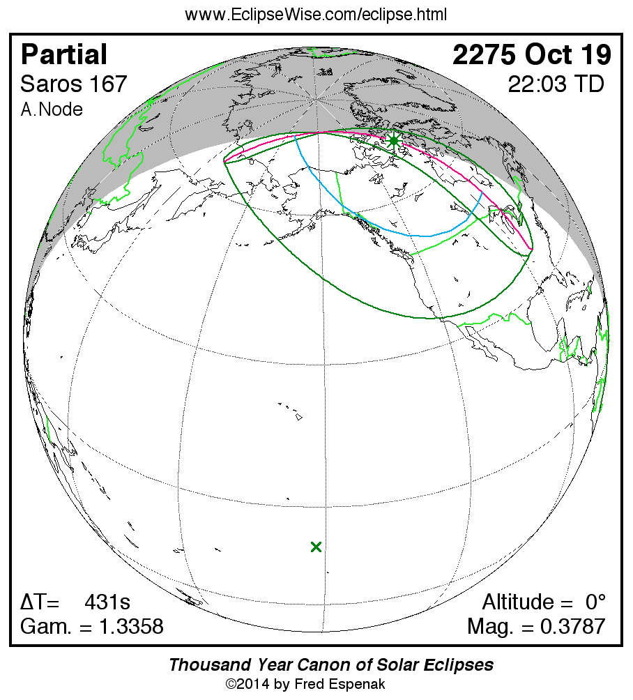 The instant of greatest eclipse takes place on 2275 Oct 19 at 22:03:12 TD (21:56:00 UT1).