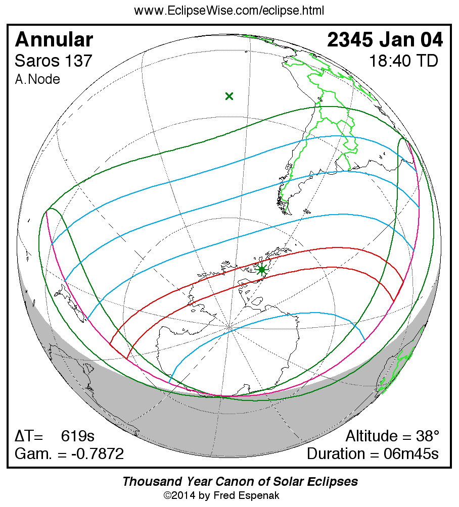- Orthographic Map: Annular Solar Eclipse of 2345 Jan 04 - global map of eclipse visibility