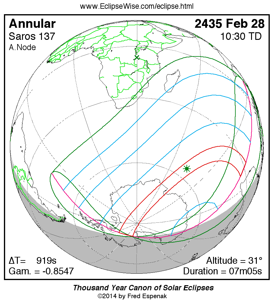 - Orthographic Map: Annular Solar Eclipse of 2435 Feb 28 - global map of eclipse visibility