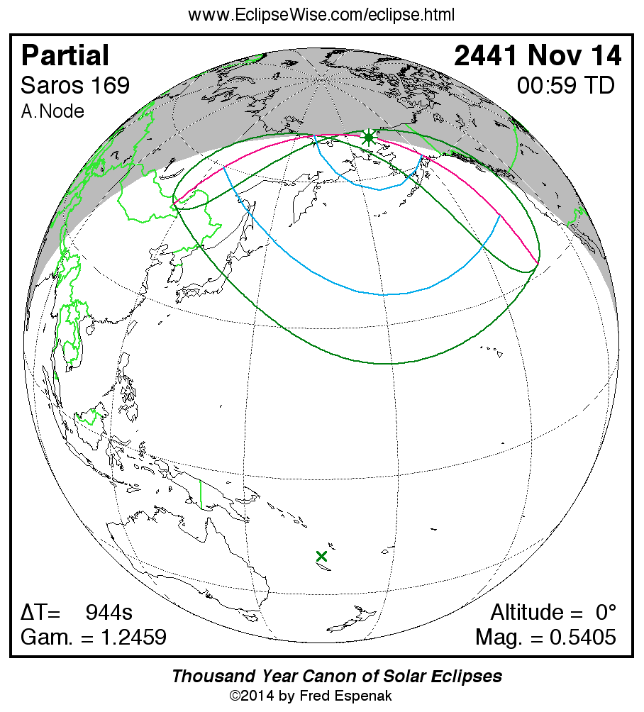 The partial solar eclipse of 2441 Nov 14 is preceded two weeks earlier by a total lunar eclipse on 2441 Oct 30.