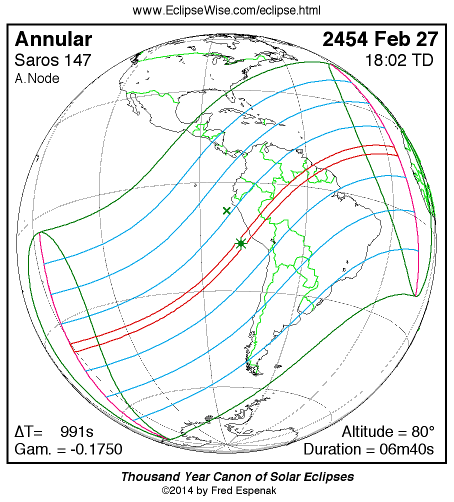 The tables below contain detailed predictions and additional information on the Annular Solar Eclipse of 2454 Feb 27 .