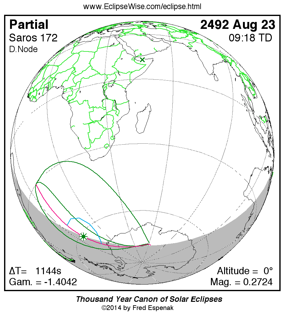 Another solar eclipse occurs one synodic month before the 2492 Aug 23 eclipse. It is the partial solar eclipse of 2492 Jul 24.